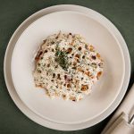 Kërpudha të fërguara në salcë shege me trumëz të freskët