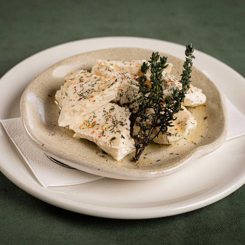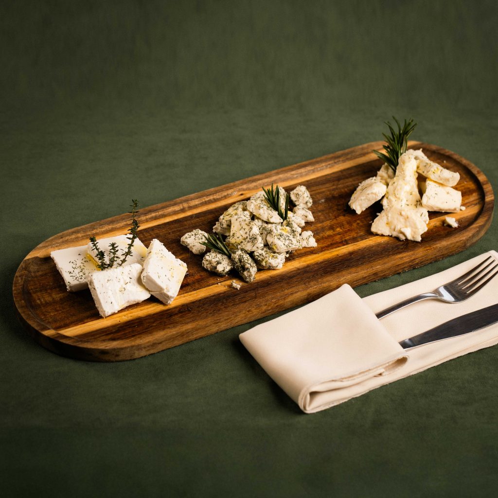 Buffalo, sheep, Sjenica, or village-style cheese marinated with fresh oregano and olive oil.