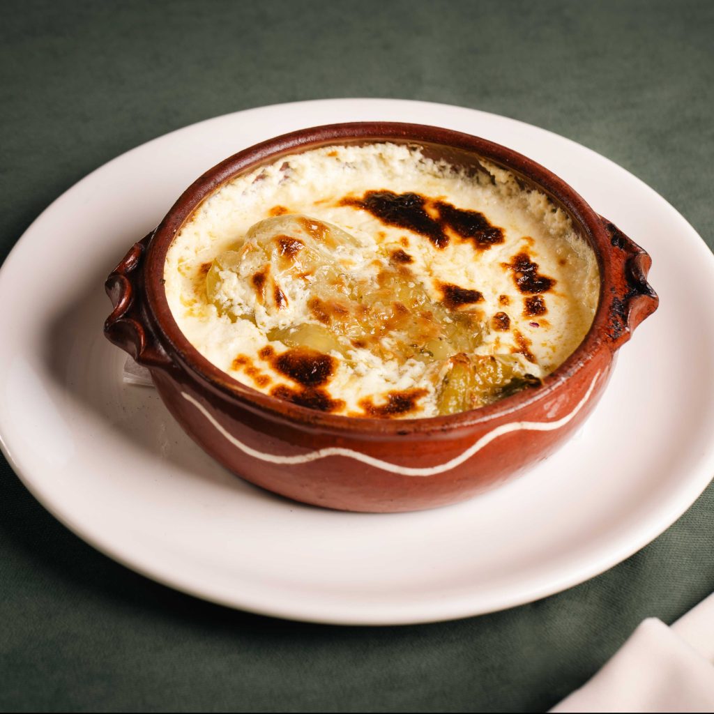 i shërbyer i ngrohtë në tavë, sipas recetës tradicionale.