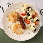 Dy salçiçe (virshlle) shtëpie, bukë artizanale, djathë i shtëpisë, perime ose turshi.