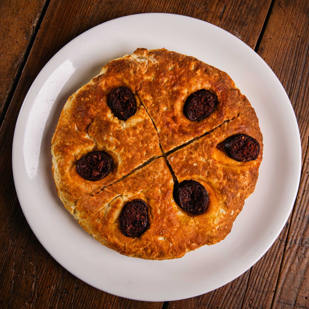 Homemade bread ‘Pogaçe’ with suxhuk