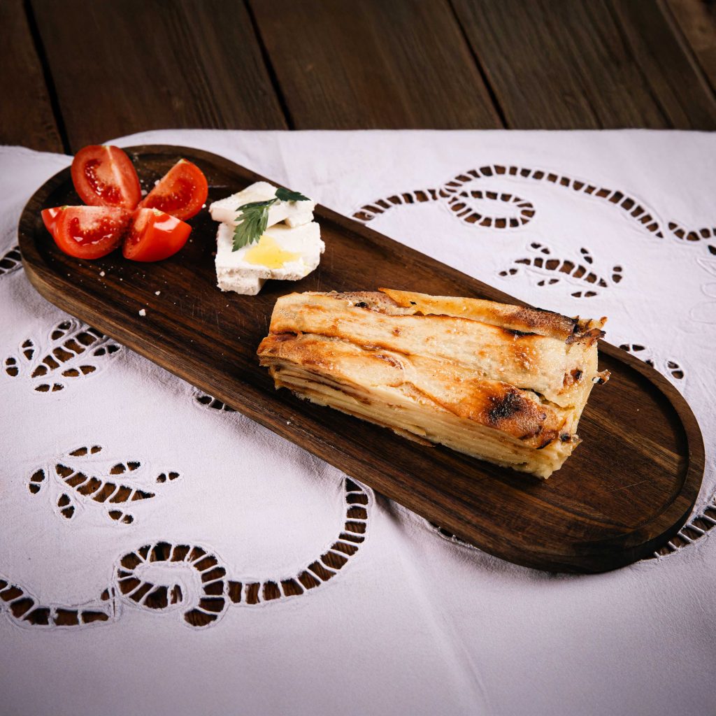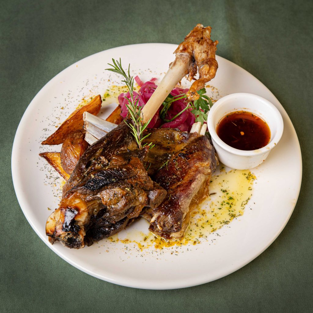 Slow-roasted lamb baked in the oven, covered with a traditional sauce made of yogurt, cream,
