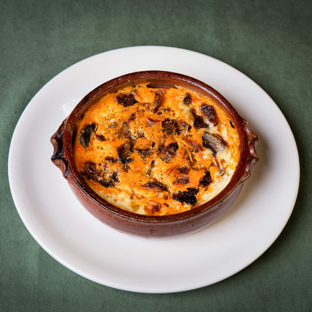 served warm in a traditional clay dish